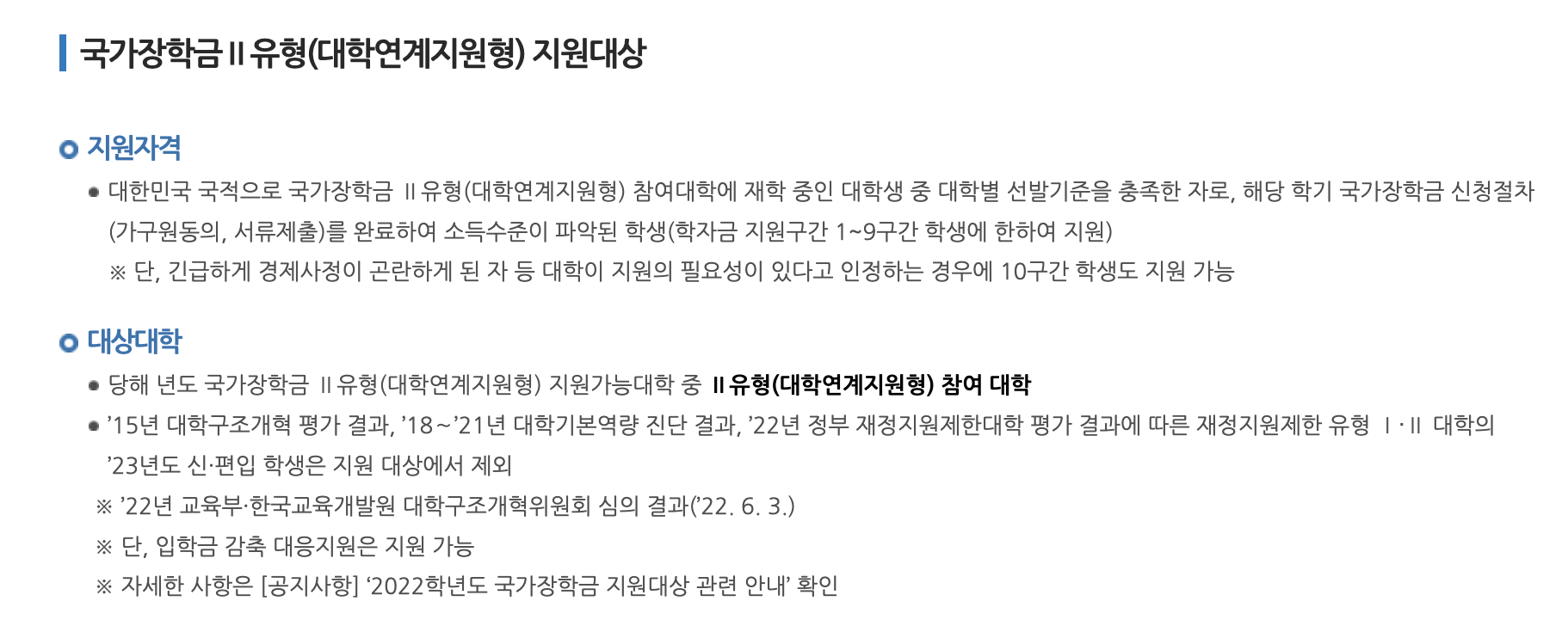 국가장학금 신청 Ⅱ 유형
