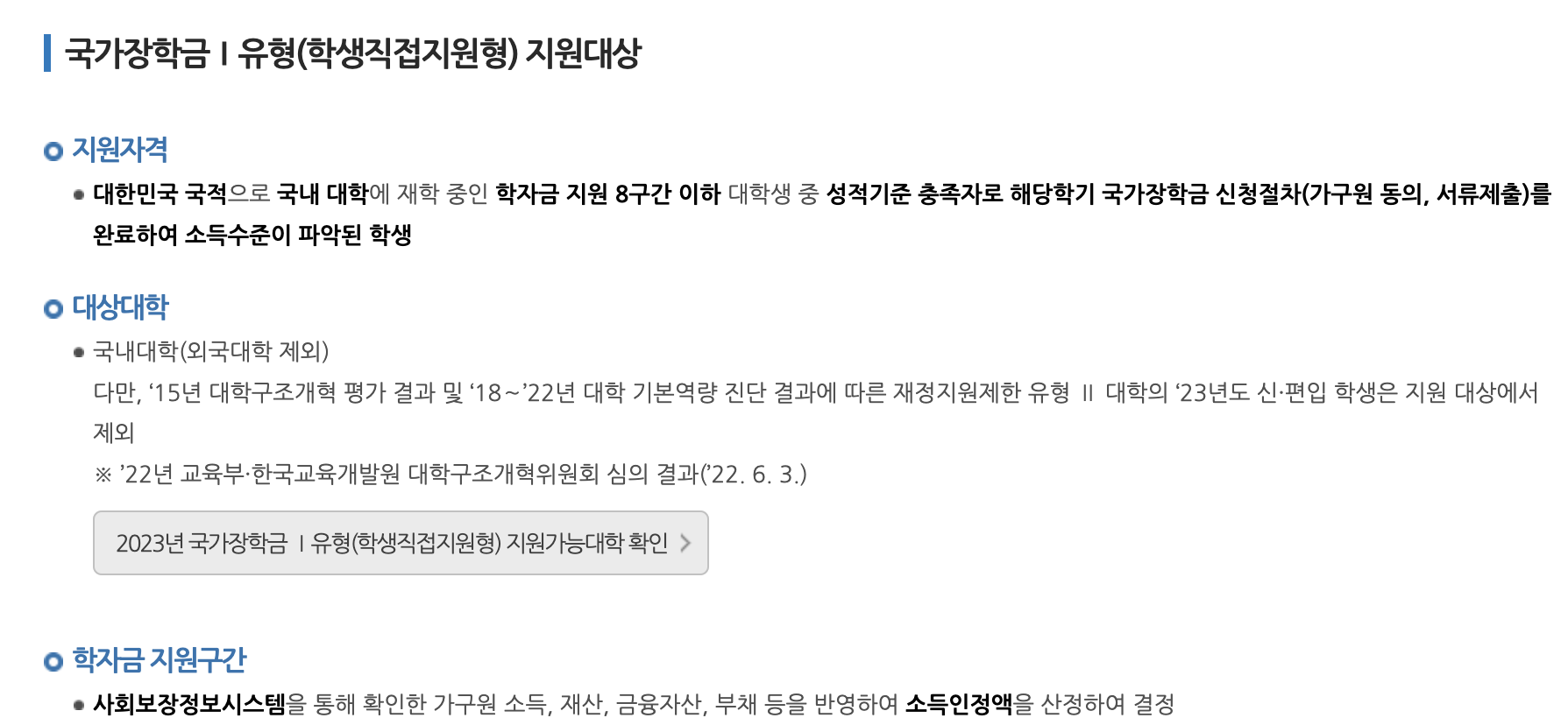 국가장학금 신청 Ⅰ 유형
