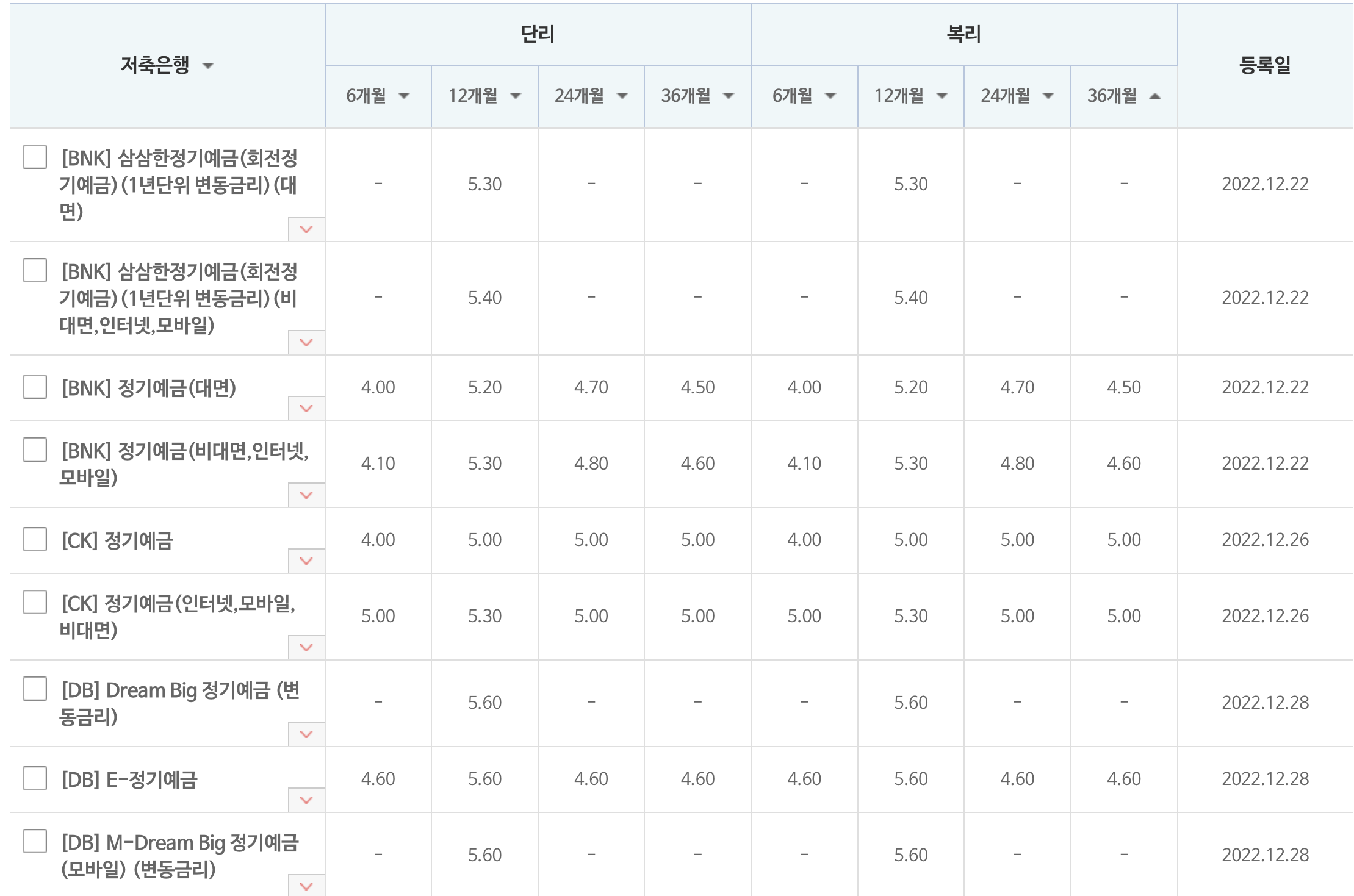 해당 사이트들은 금융회사에서 제공하는 정보를 실시간으로 업데이트 해주는 금리 비교 사이트들입니다. 사이트별로 업데이트 일자도 다르고 명시가 안되는 사이트도 있기 때문에 가입하기 전에 상품 공시 정보들을 명확하게 보시고 가입하시는걸 권해드립니다.