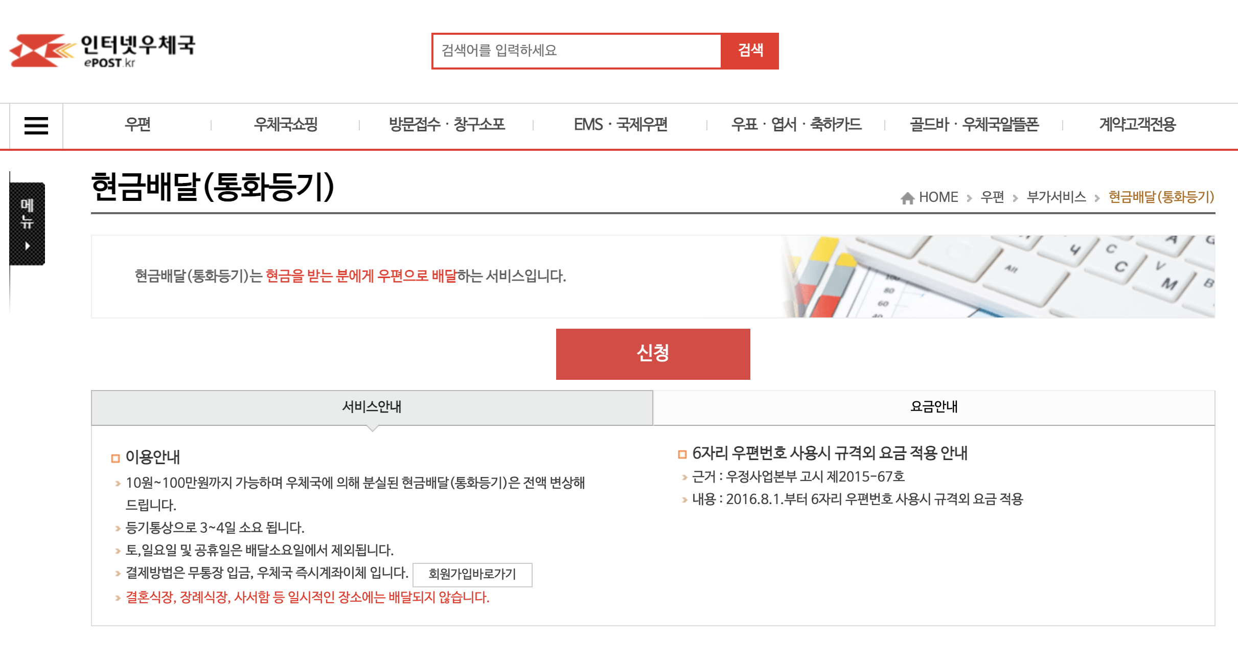 우체국 현금 배달 서비스 신청 방법