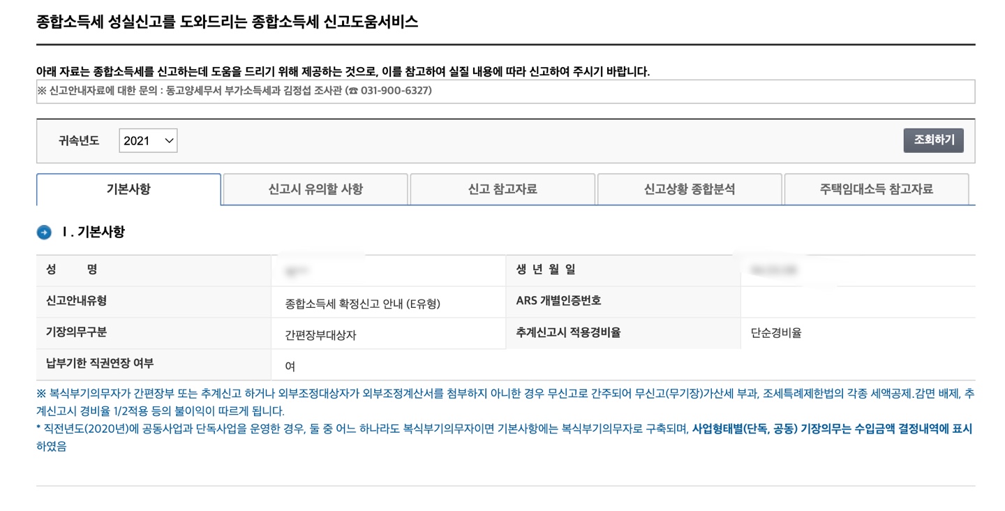 보통 특이한 케이스가 아닌 경우 모두채움 신고/ 단순경비율 신고 대상자이니 유형을 조회해보시면 되겠습니다.