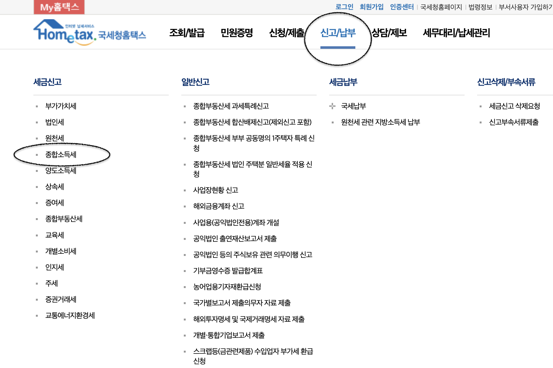 ✔️ 국세청 홈페이지 로그인 -> 신고/납부 종합소득세 -> 종합소득세 신고